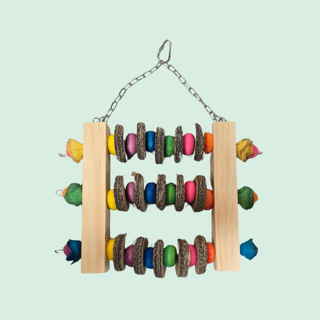 Wooden bars and beads with cardboard circles